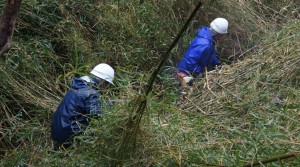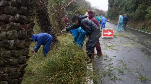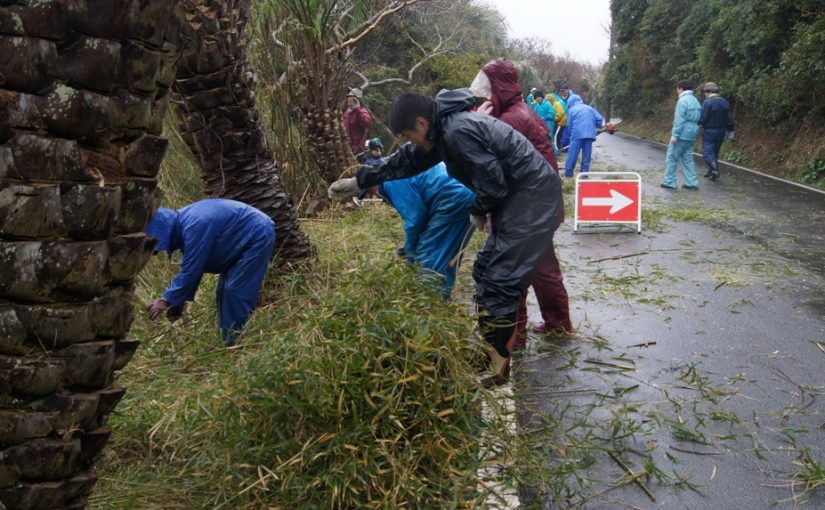 ブログ 南伊豆石廊崎清掃2 2012年3月17日 by KTV-12ch 道路際の竹を切って林の中が見えるとゴミ捨てもなくなる。雨の中での作業でしたが聞けば35年前に植えた椰子の木 足許がスッキリして国・県・町の監督官も一緒に竹を片付けながら住民共々 さあこれからの 作業でした、及ばずながら作業員の一員でした