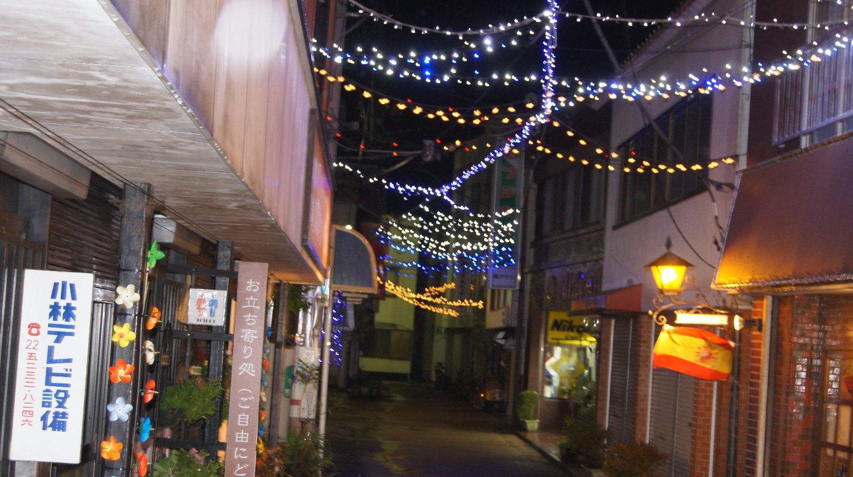 ブログ イルミネーション 2013年1月14日 by KTV-12ch 昨年のクリスマスに併せて下田駅前香煎通りにイルミネーション設置、足許にはロウソクを点灯しました、成人式までは続けようと通りの若い方たちが頑張りました。下田市の成人も300人ほど、若い人が増える町にしようね・・・一歩づつ スペイン料理の「みのりかわ」さんも居酒屋「ぼちぼち」さんも元気です イルミネーション イルミネーション イルミネーション