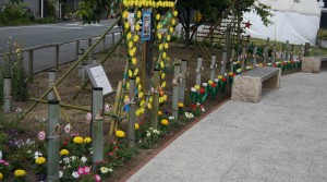 沼津で技能五輪が行われた際、メイン会場入口を彩った竹行灯のお知恵拝借して黒船祭前夜、南伊豆の竹博士山本剛さん、ペーパークラフトアーティスト広井さん、黒船社の森社長の采配で飾り付けられました。