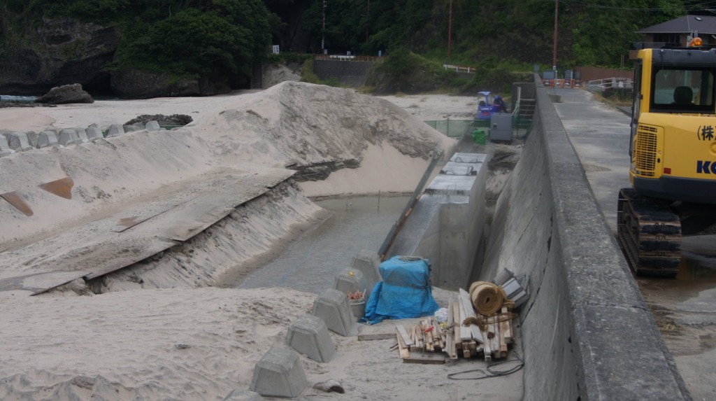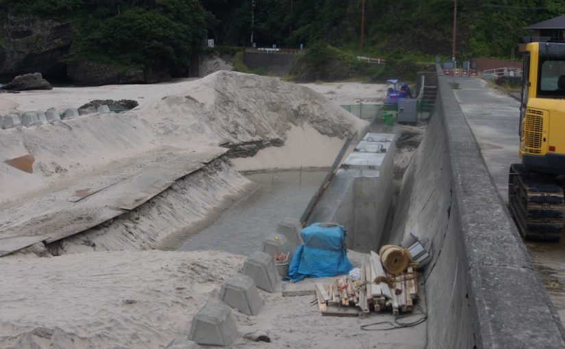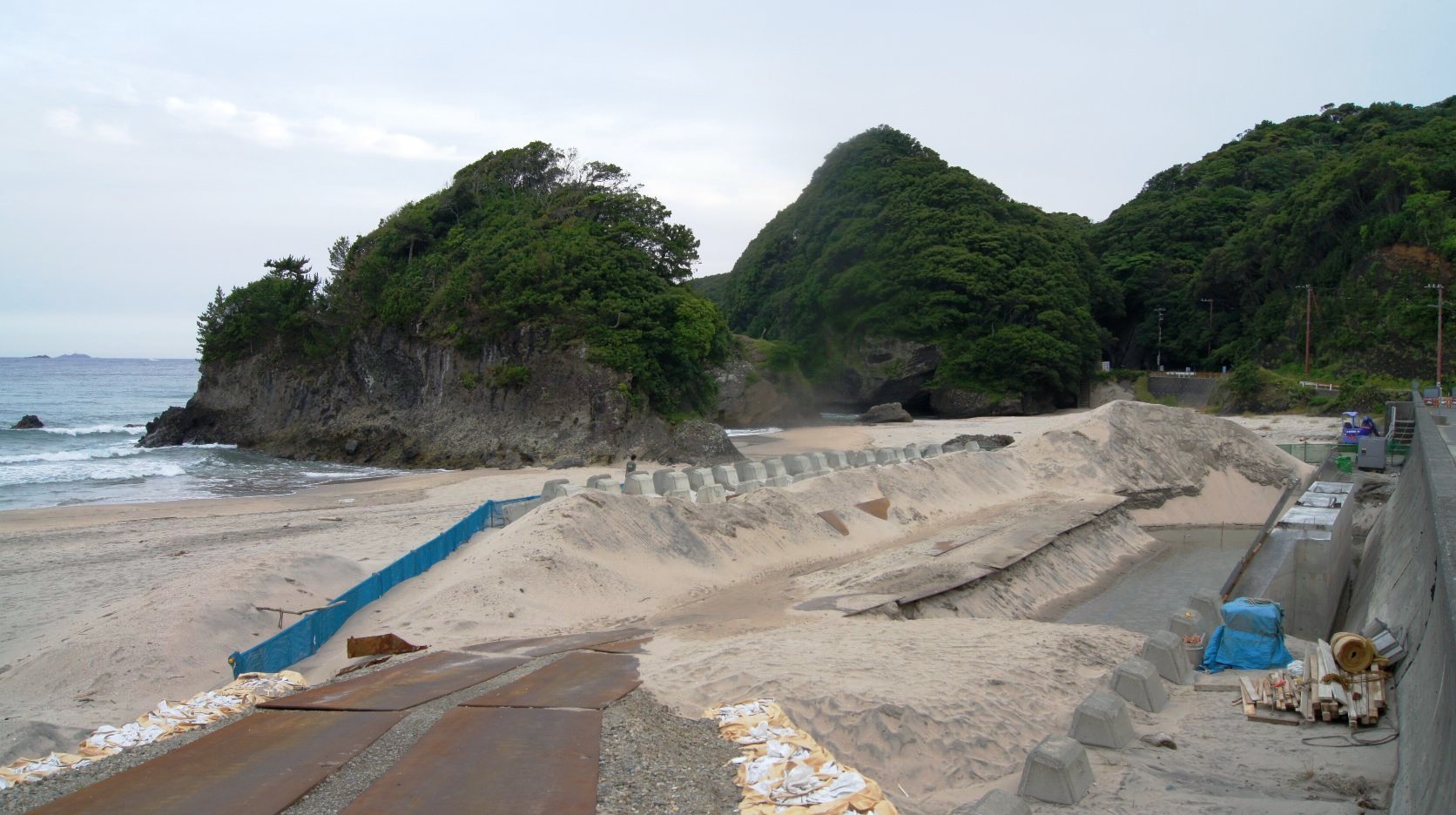 吉佐美・大浜海岸では海岸よりの避難路建設が始まりました、サーファーも海水浴客も安心なビーチの提供です。行政も自主防災も一枚岩で進化中です