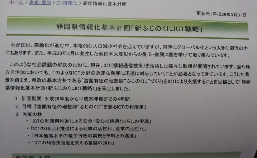 3月31日付けで静岡県ではICT戦略4か年計画を発表しました
