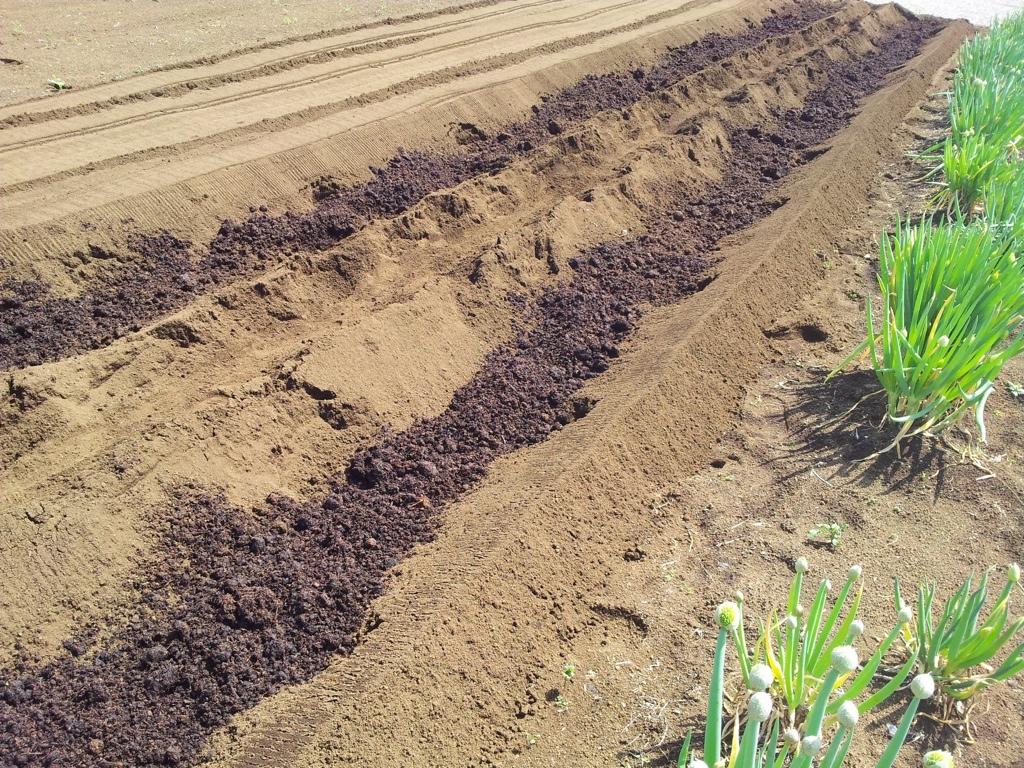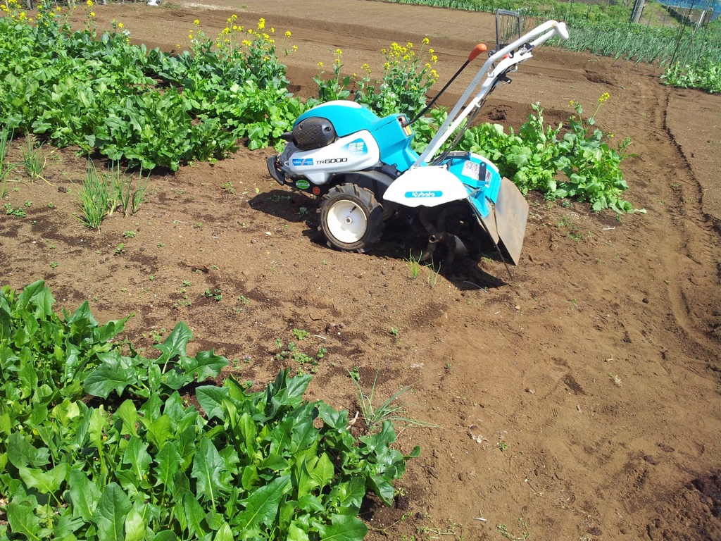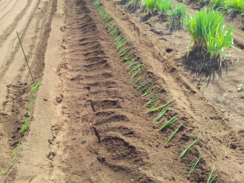 便利な耕運機でウネを作り、武井牧場さんからの牛糞堆肥を鋤きこんで根深ねぎの植え付け 150本も植えてどうするの? ところが配布先が手ぐすね引いて待っている状態で人気絶頂