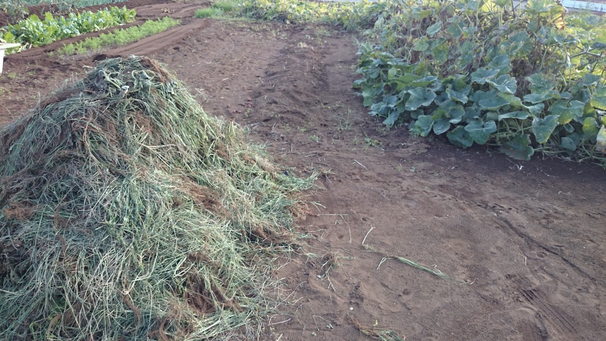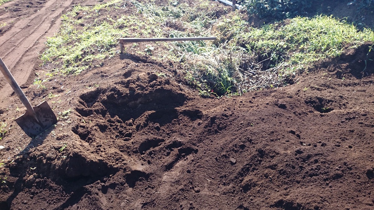 といっても草抜き、大きくなりすぎ大変大変 牛蒡を抜いた後に以前の草やナスやキューリ・トマトの残骸を埋め込み整地して耕運機をかけて新たな草は山積みにして、