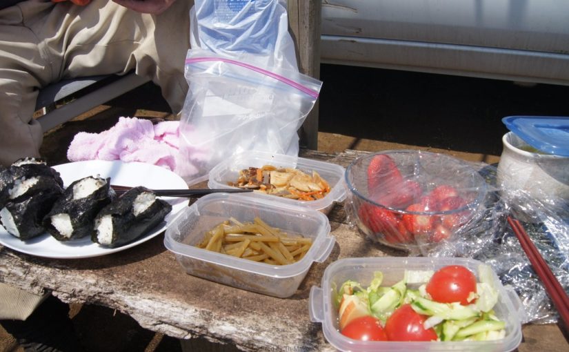 4日の昼飯 大体手を洗いに行かない キタネー と周りが言うので おしぼりでさっと拭く。握り飯をほお張りながら しばしの休息時間 ポカリスェットとお茶で喉を潤し、でも気ままで良いなあ 畑を回って そーだ今年も5月豆不作 何せ花は咲いても実がつかない。蜂や蝶々に嫌われたか?? でもなあ他のものが十分できるから 良いとする。