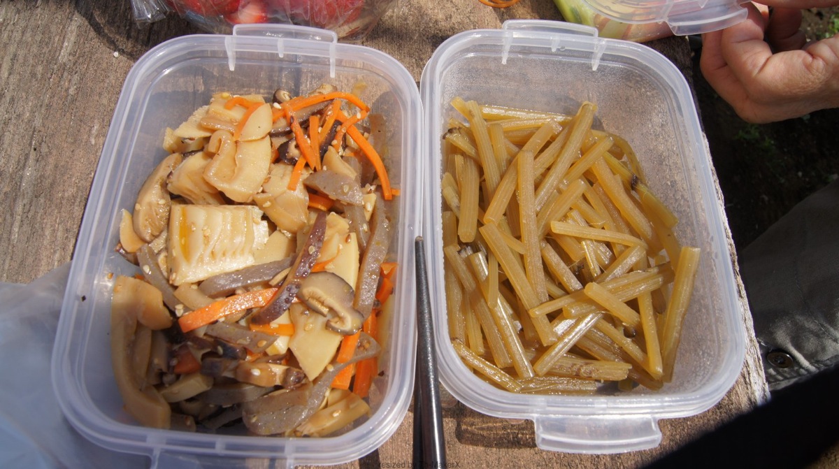 4日の昼飯 大体手を洗いに行かない キタネー と周りが言うので おしぼりでさっと拭く。握り飯をほお張りながら しばしの休息時間 ポカリスェットとお茶で喉を潤し、でも気ままで良いなあ 畑を回って そーだ今年も5月豆不作 何せ花は咲いても実がつかない。蜂や蝶々に嫌われたか?? でもなあ他のものが十分できるから 良いとする。