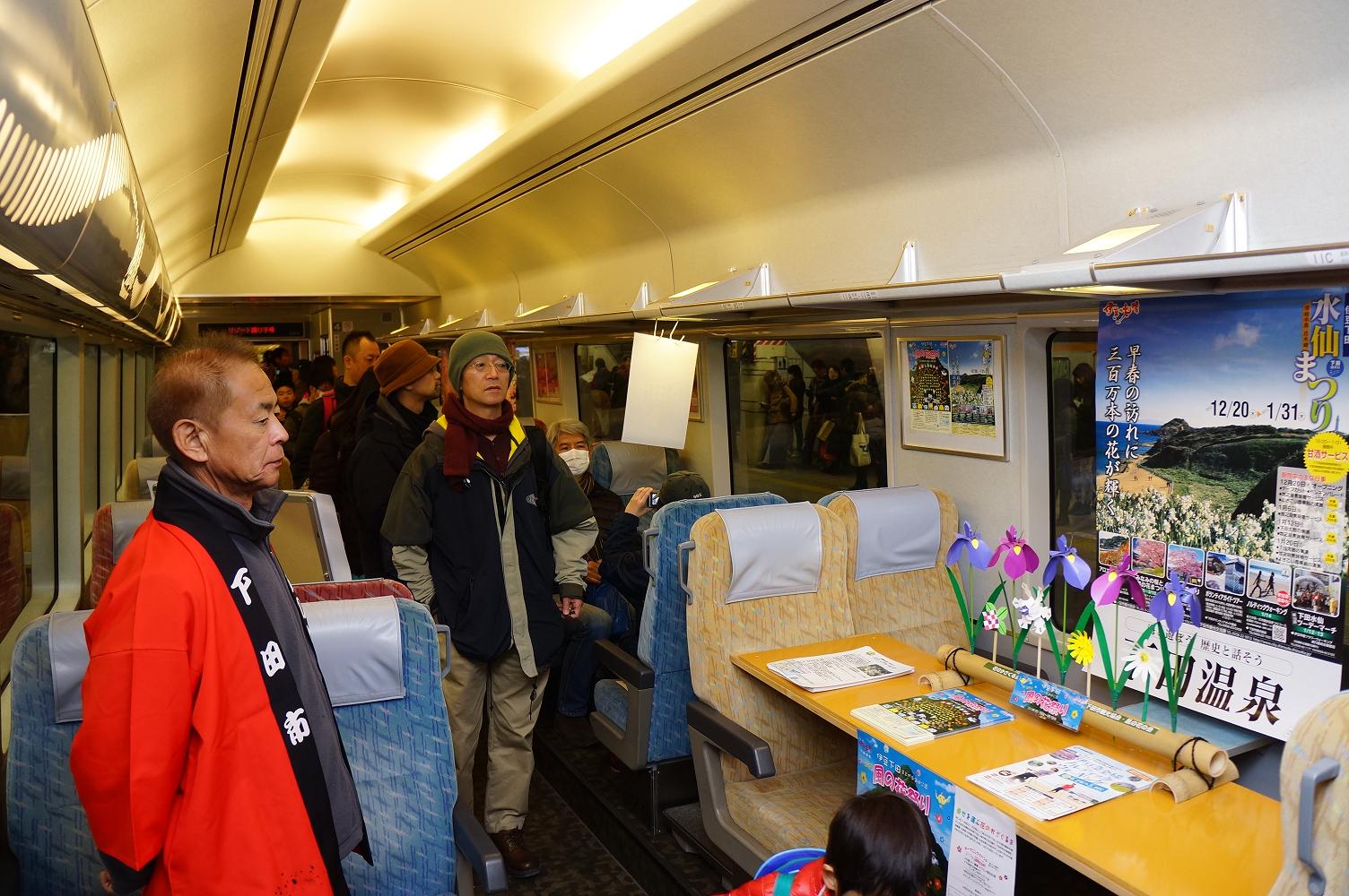 お知らせ 立川駅と踊り子 2013年1月20日 by KTV-12ch 2月9日よりJR東日本「粋な計らい」リゾート踊り子号を中央線・高尾駅から下田まで土日祭日特別便を仕立ててくれました、さあこれから伊豆は南に行くほど美しい、今日は列車の試乗見学会 立川駅と踊り子 立川駅と踊り子 立川駅と踊り子 海岸線を見ながら走る、横向き座席 車内には水仙から桜 食べるものより花・花・花 みなさん横向き座席に感嘆しきり 立川駅と踊り子 立川駅と踊り子 立川駅と踊り子