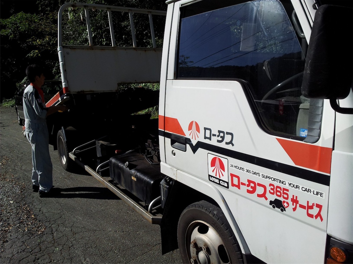 当方なんら心配なし「ロータスの看板、豆洋自動車 待たせる間もなく 積載車到着」