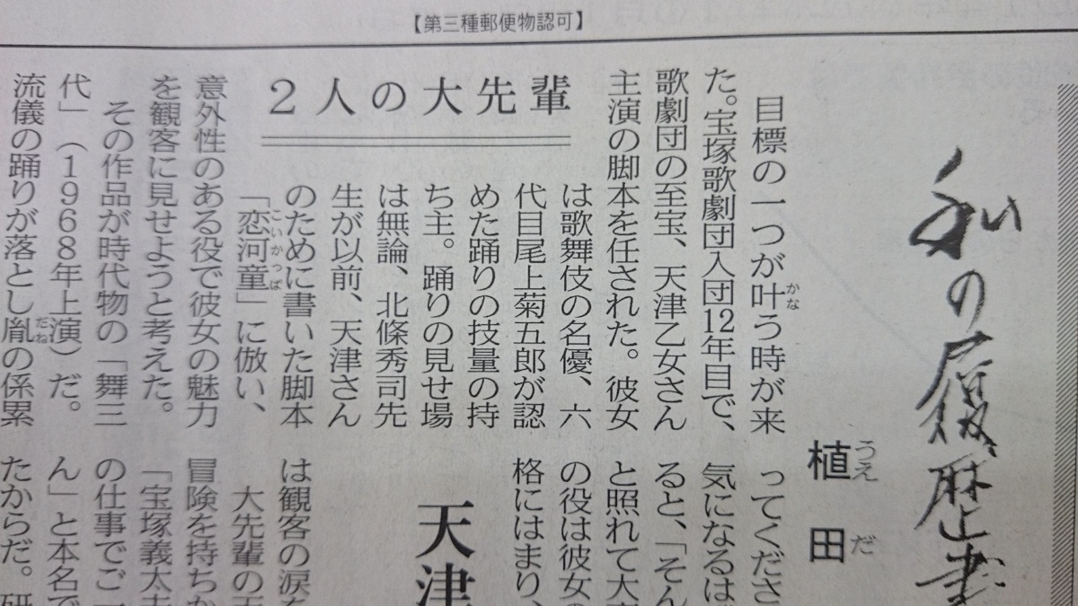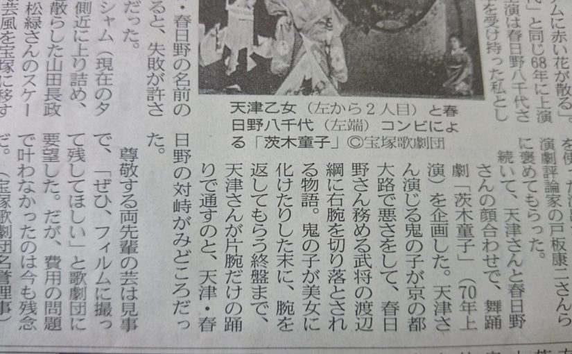 10月16日日経 私の履歴書に「宝塚」のお話し「昭和45年 凄いシーンを映像で残したかったが予算なく、対処できなかった。・・・」と