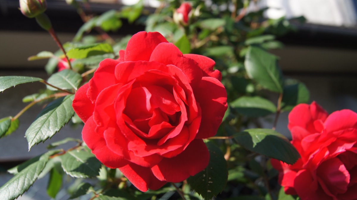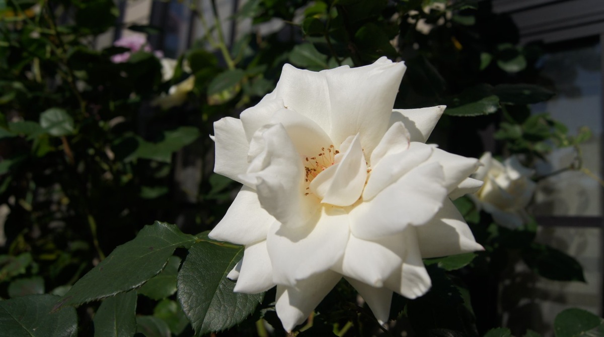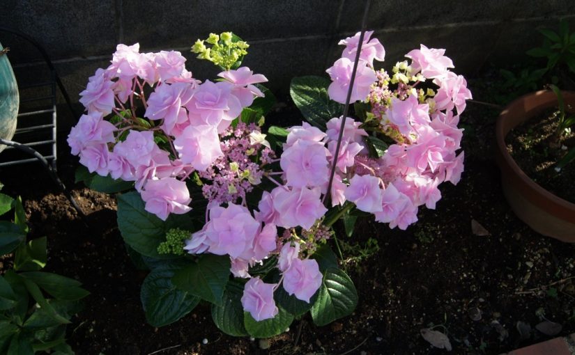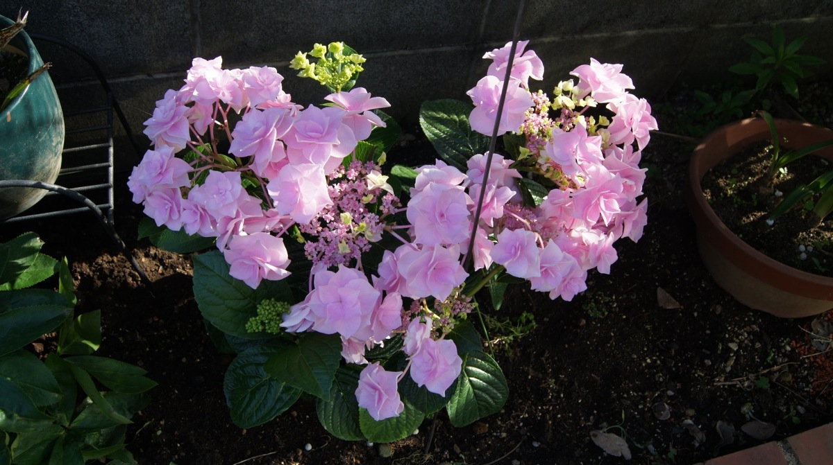 以前 横浜の娘から届いたバラが所狭しと咲いている所に「アジサイの御着き。」