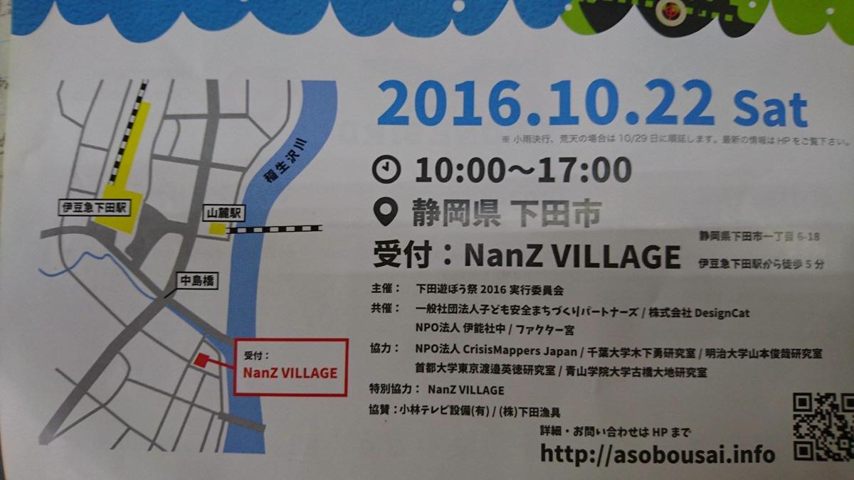 ブログ 遊ぼう祭2016 2016年9月5日 by KTV-12ch 9月2日遊ぼう祭2016 防災を楽しみながら体験しよう!と 明大山本教授はじめお見えになりました10月22日に下田旧町内で鬼ごっこをしながら防災ゲーム、逃げ地図作り、キツネを探して避難路確認などなど 女狐にさあこれから!取り敢えず下田の酒肴!これから案内とPRです。