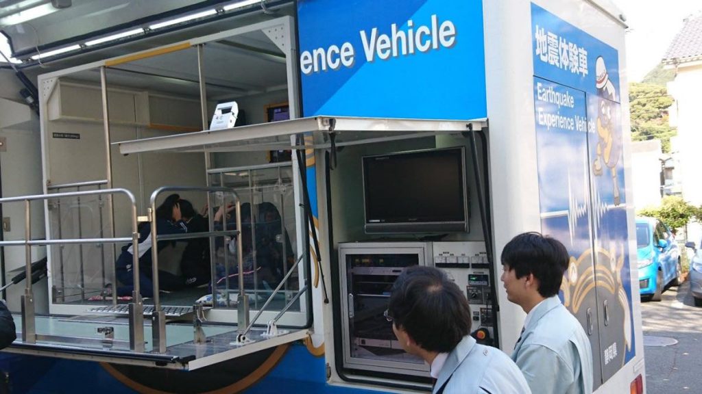 12月9日下田小の中にあります東部特別支援学校児童たちの耐震授業です。小学校裏山の理源寺が避難路・ハイキング路として整備が始まりました「取り敢えず児童たちは5分で中腹まで、賀茂振興局の先生による「地震が来たら頭を抱えて床に伏さること、津波の危険が有ります、高い所に逃げること。」判り易くご説明を戴いて児童たちは起震車の中へ・・」怖くて怖くて今日の予定を聞いてからずっと心配だった児童もいて先生方も気を揉まれて居ましたがうっすら涙を浮かべて車内から出てくる児童たち、先生の手を握り耐えていた姿が印象的でした。理源寺山はこれから整備が進むと城山公園全体が素敵なハイキングコースになっていきますね。スグには出来ない事ですが一歩づつ進化ですね。