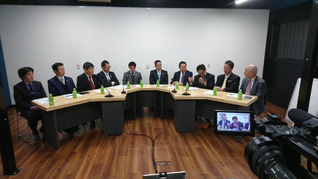 2月20日賀茂地区若手議員座談会 東伊豆・河津・下田・南伊豆・松崎・西伊豆町 若手議員OBの西伊豆町・星野町長、南伊豆町・岡部町長と現役議員の熱い意見交換 2時間をOVERするほど これはもう焦点を一つにしぼぅて 一時間番組を2本撮り