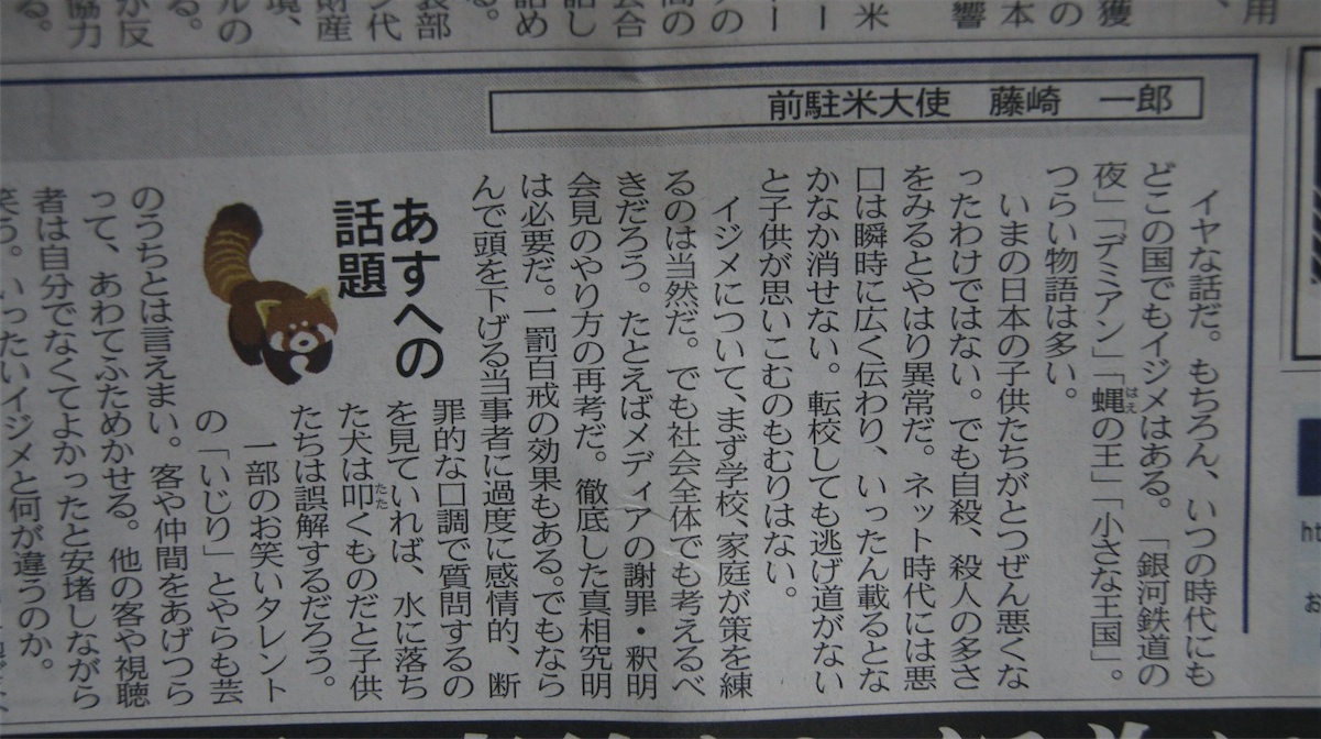 折しも11日夕刊に「イジメ」 よくよく考えるとテレビは怖い ケーブルテレビ屋の爺 のんびり出来ねえか? でも当地 ツーカーで間違えたら〝ごめん”が効く。以前都会の学校生徒旅行で「津波怖いので里での臨海...