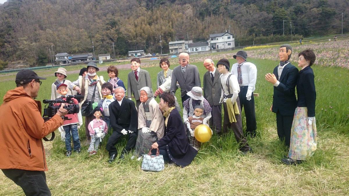 孫たちと松崎のお花畑に!! なんと本物とかかしの区別がつかない おどろきおどろき 手の込んだ創作 頭が下がります。いちばん びっくりポン は咲いてるお花とこれから咲く桜かなあ?? でした。