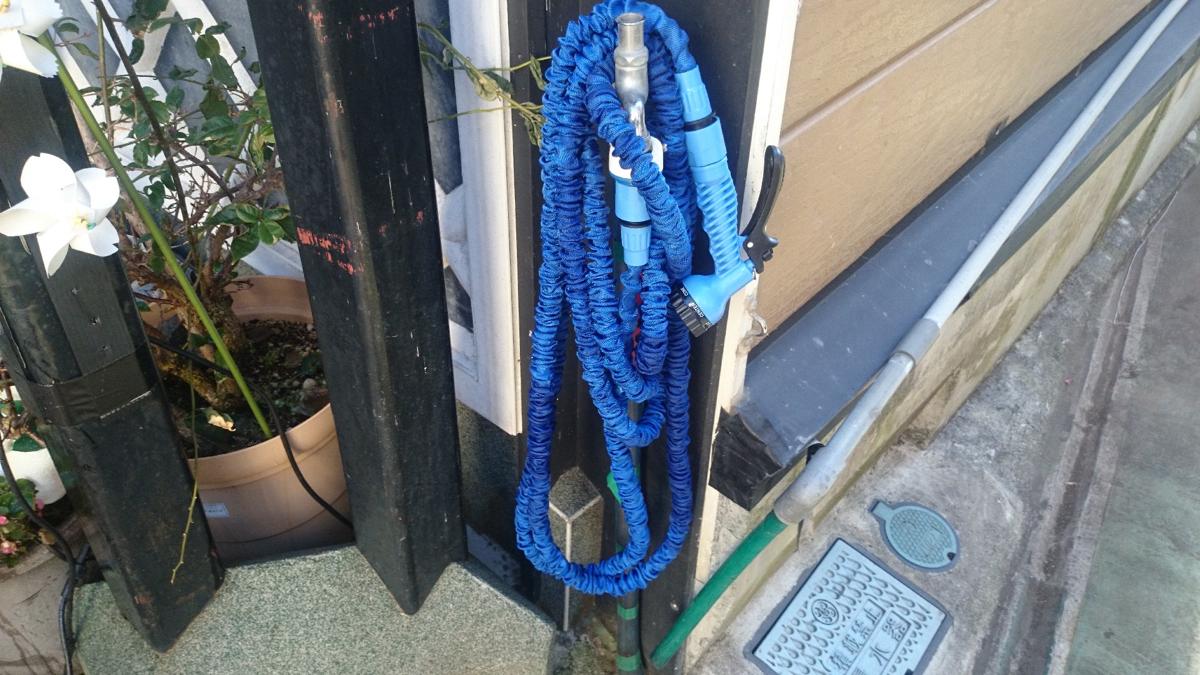 12月5日朝 3千円ちょっとの新品ホースを購入して会社の前の花木の水遣り、 お水の圧力で15メートルまで伸びる優れもの、お水を絞り切ると元のジャバラ状態でチョコンと掛けておける。今までのビニールホース...