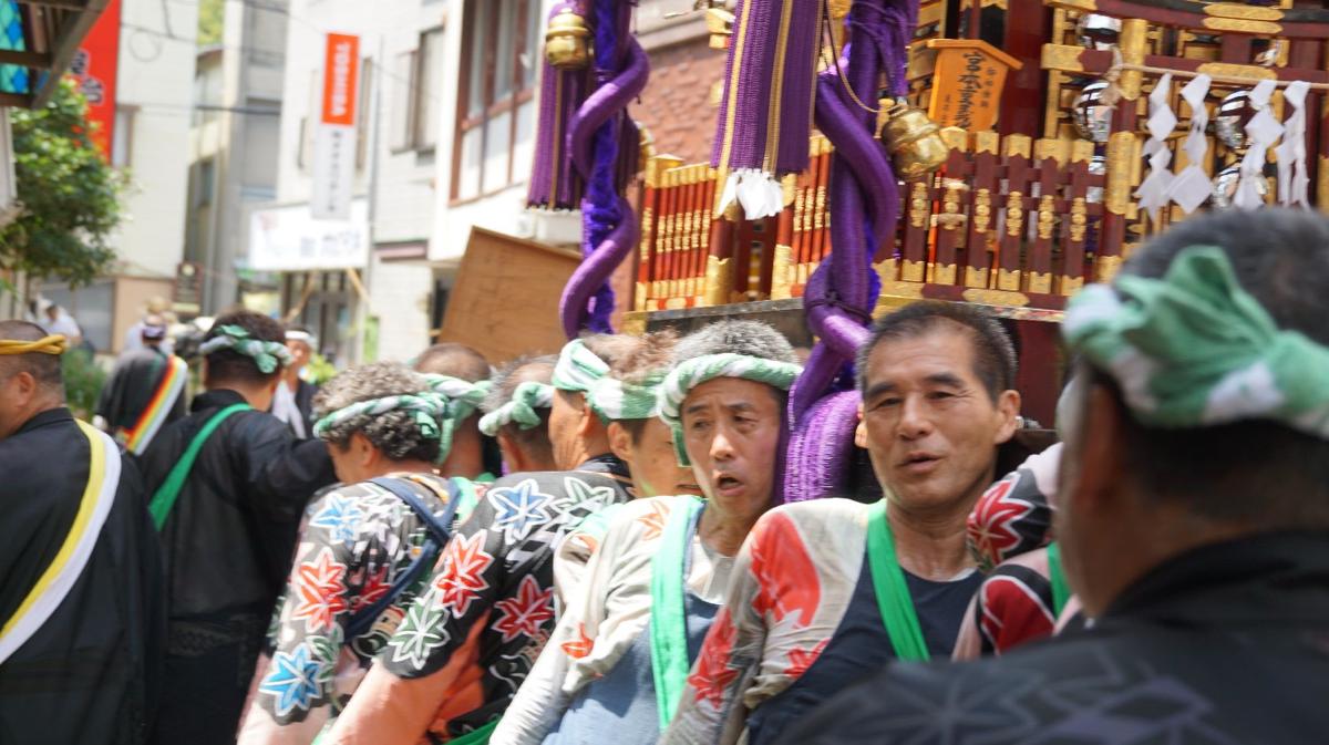 例年のことながら 二日間街中祭り一色 撮影班も忙し忙し 会社の前に神輿が入ってきました 何せ800kgもある神輿 下田は道路が狭いので 担ぎ手の棹は縦棒二本、そのため担ぎ手は 20人前後 そりゃー大変...