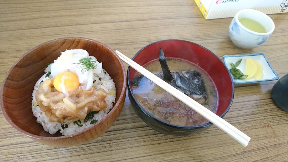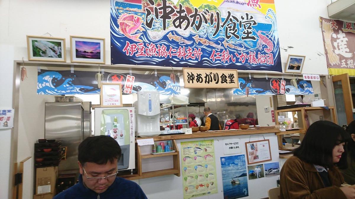 西伊豆町仁科漁協の沖あがり食堂 週末休日調理場には 山本組合長のお姿が・・サバの切り身が入った汁は調理担当が組合長、11時開店なのに11時半にはもう行列。ここで元気に働こう!!と背中を押されて頑張れま...