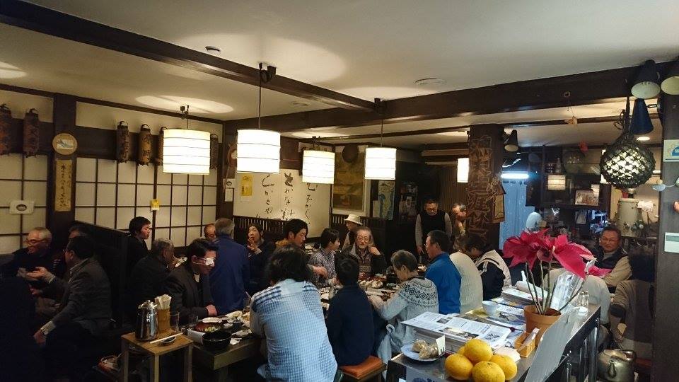 3月25日 下田自酒「黎明」新年度初搾り試飲会 そば処「むさし」で 地元有志が集まり 賑やかでした。倶楽部として15年続いて居る事が大変すばらしい事だと評価されて自酒倶楽部進士会長はますます意気軒昂。