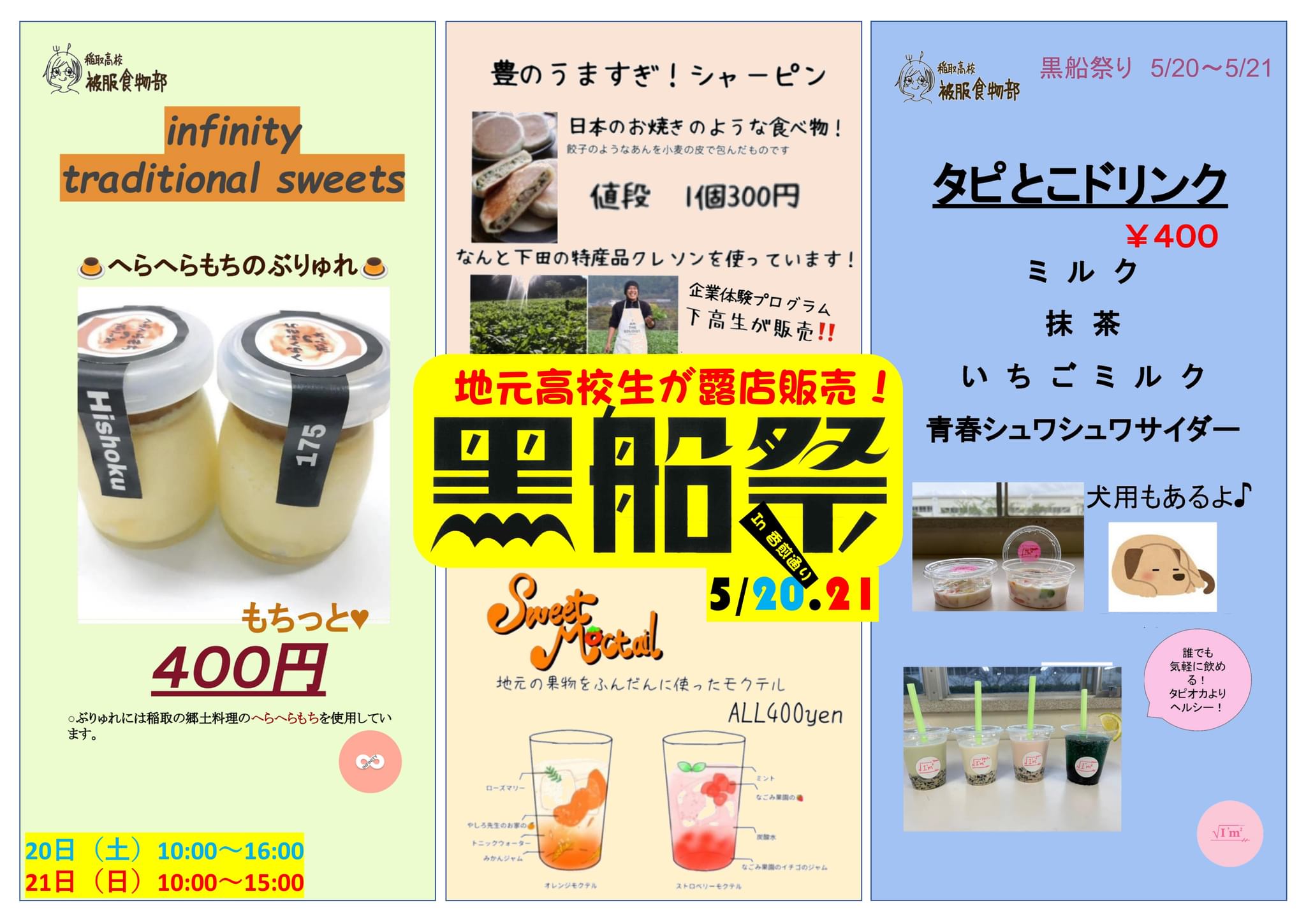 さあコロナにも用心しつつ、5月20日21日「黒船祭」です、コロナ前は2万人の下田市に日米中心に20万人余の方々が集う「まつりです。」下田駅前香煎通りを高校生通りにしようと伊豆南の高校四つの生徒有志が決...