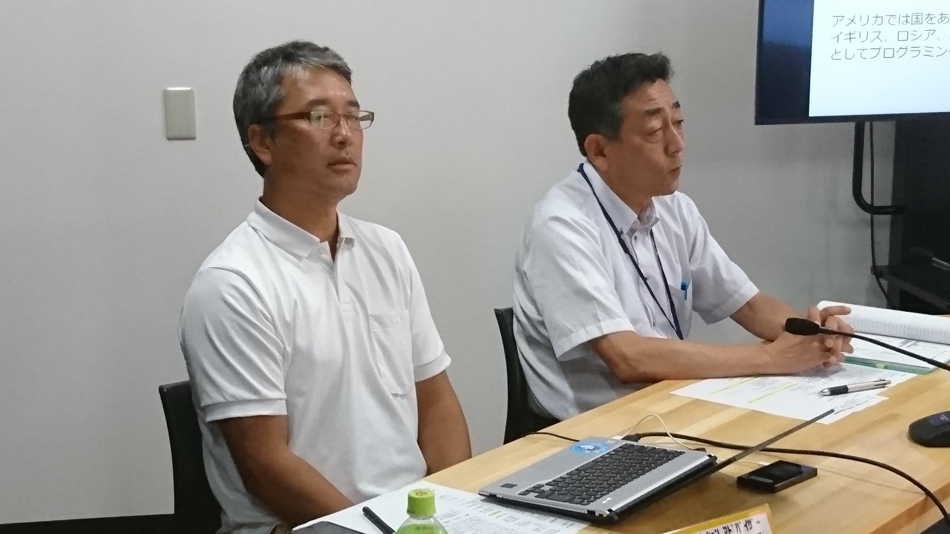 9月5日下田市の中学校4校で始まった「ネット・プログラミング教育」ドワンゴ(角川・ニコニコ動画)の吉村さんは東京東銀座の事務所で、仕掛け人・東急から出向き下田市シティプロモーションアドバイザーをされている長谷川光さんと佐々木教育長・土屋課長は下田の弊社収録室。二元中継でのプログラミング教育の実態についてお話を伺いました「県下中学で行政が絡んでの初教育授業」ゼロからスタートして一回2時間35回の履修で「コンピューターに指示命令を出してこうも出来る、ああも出来ると仕組みを組んで、都会に居なくても勉強できる!締めには授業元に