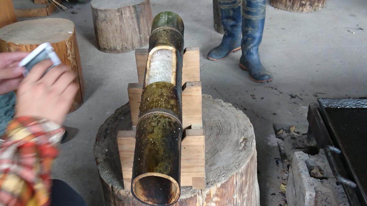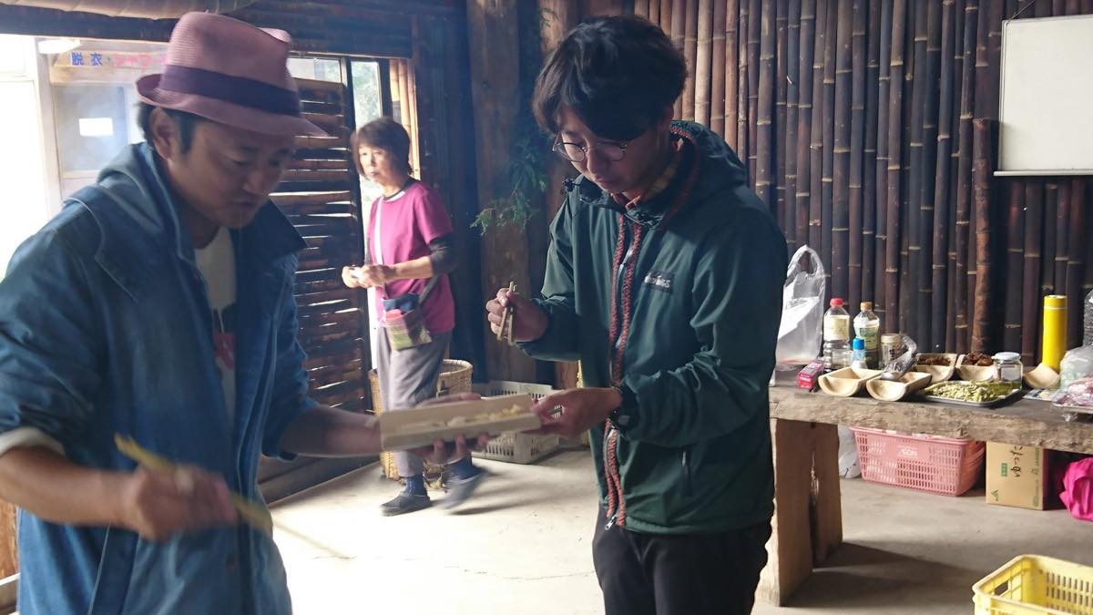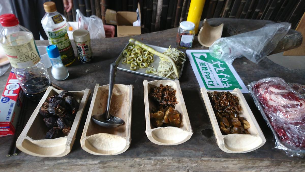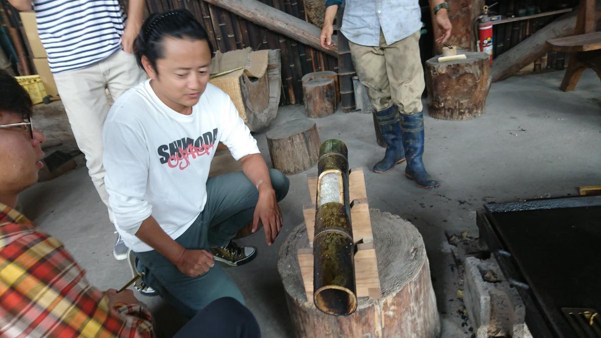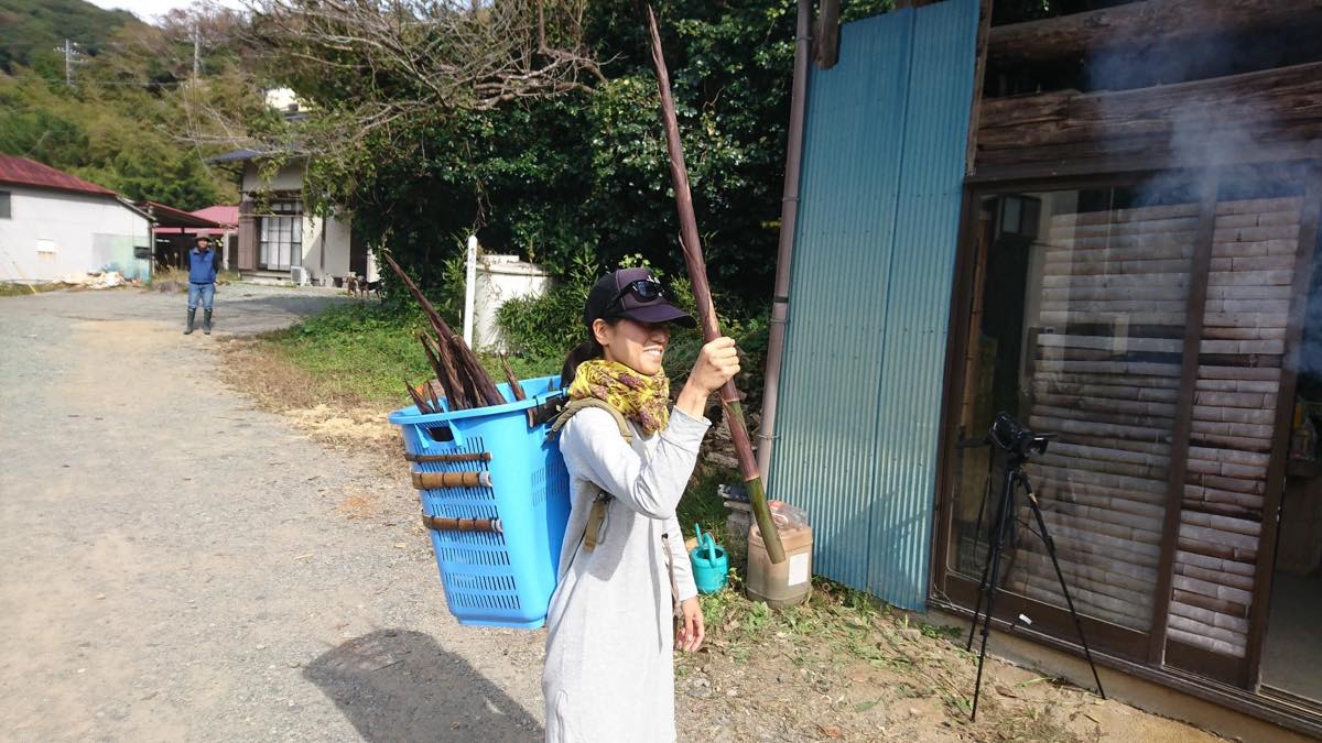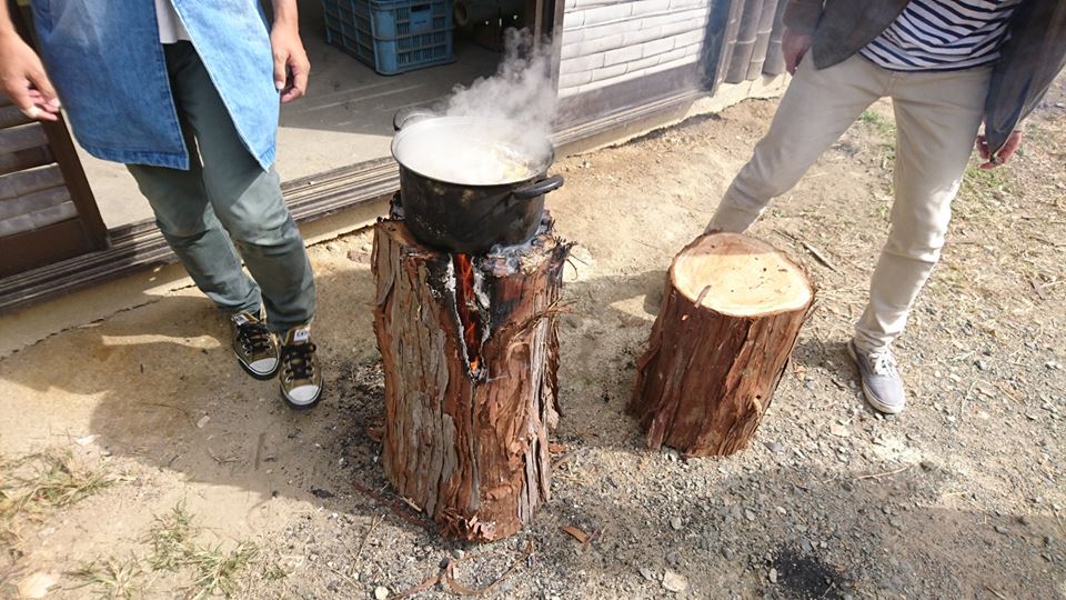 和やかにご飯を炊いて汁を作って、お箸もお椀も全部竹をその場で切って、焚き付けから材料調理まで全部が身の回りにある。都会にない素晴らしい環境。