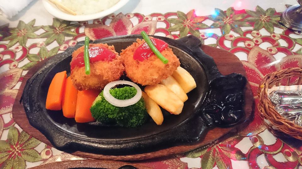 ブログ/下田・伊豆グルメ ステーキ 2018年11月15日 by KTV-12ch 下田・街中「ステーキのやまがた」でも家内はカニクリームコロッケ私はチーズハンバーグ定食、お肉はソテーありステーキあり、とにかくジュースのグラスからなにから微に入り細に渡ってキレイキレイ、クリスマスを前にテーブルクロスも変わってオシャレおしゃれ!