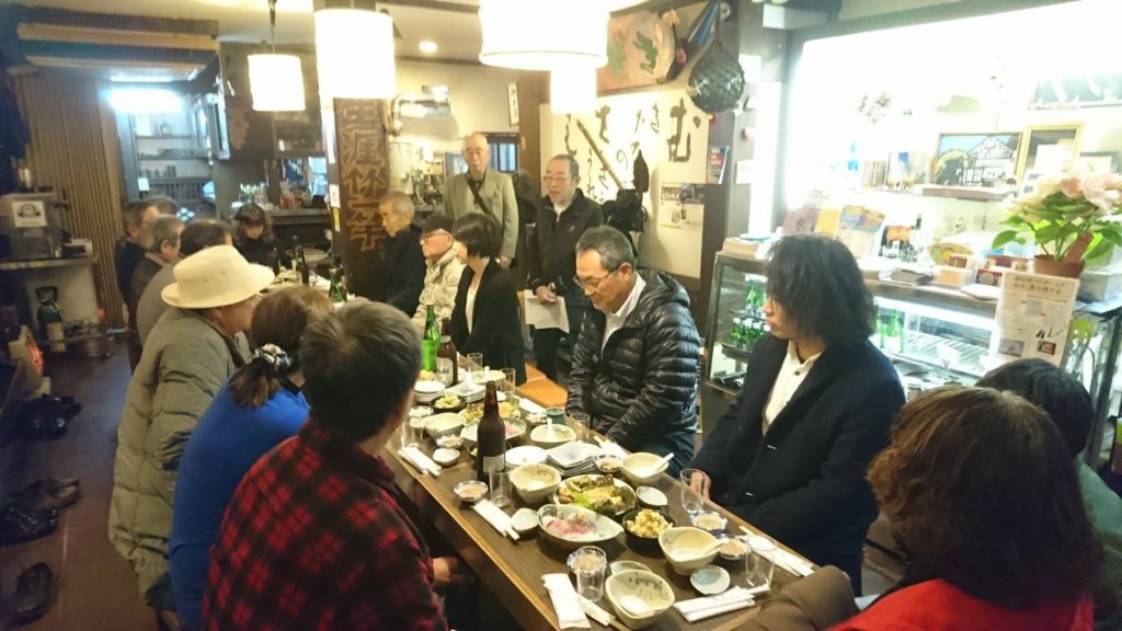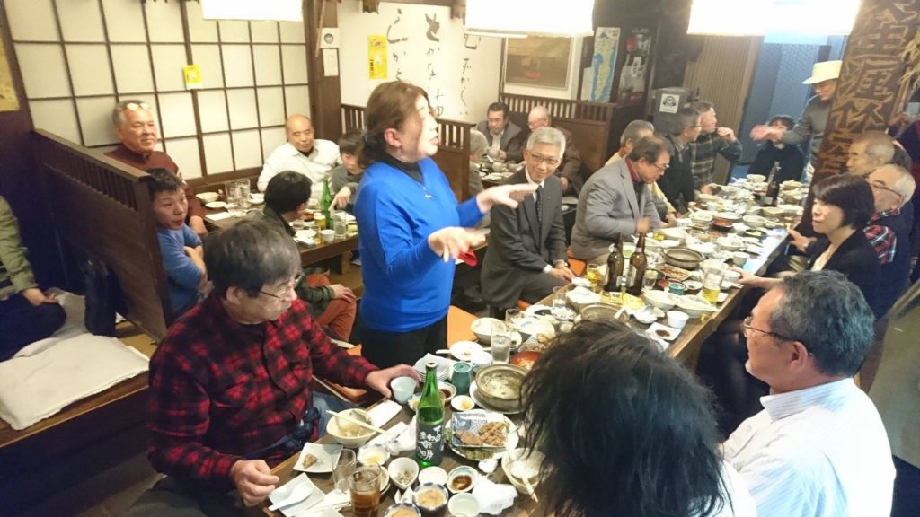 進士栄治会長よりのご提案でテーブルごとのスピーチに開国紅茶を纏める森さんから茶園の整備要請、すかざず県職員の飯田さん高校生と農林事務所と連携のお話。ブルさんこと渡辺さんから大きくなくても良い「当地にきたらコレダ!!賞品作りにかける思い。」稲梓の土屋さんから「ここにきたら見れますよと 浅黄斑の蝶々のお話。」18期を迎える下田自酒「下田黎明」は元気快活。