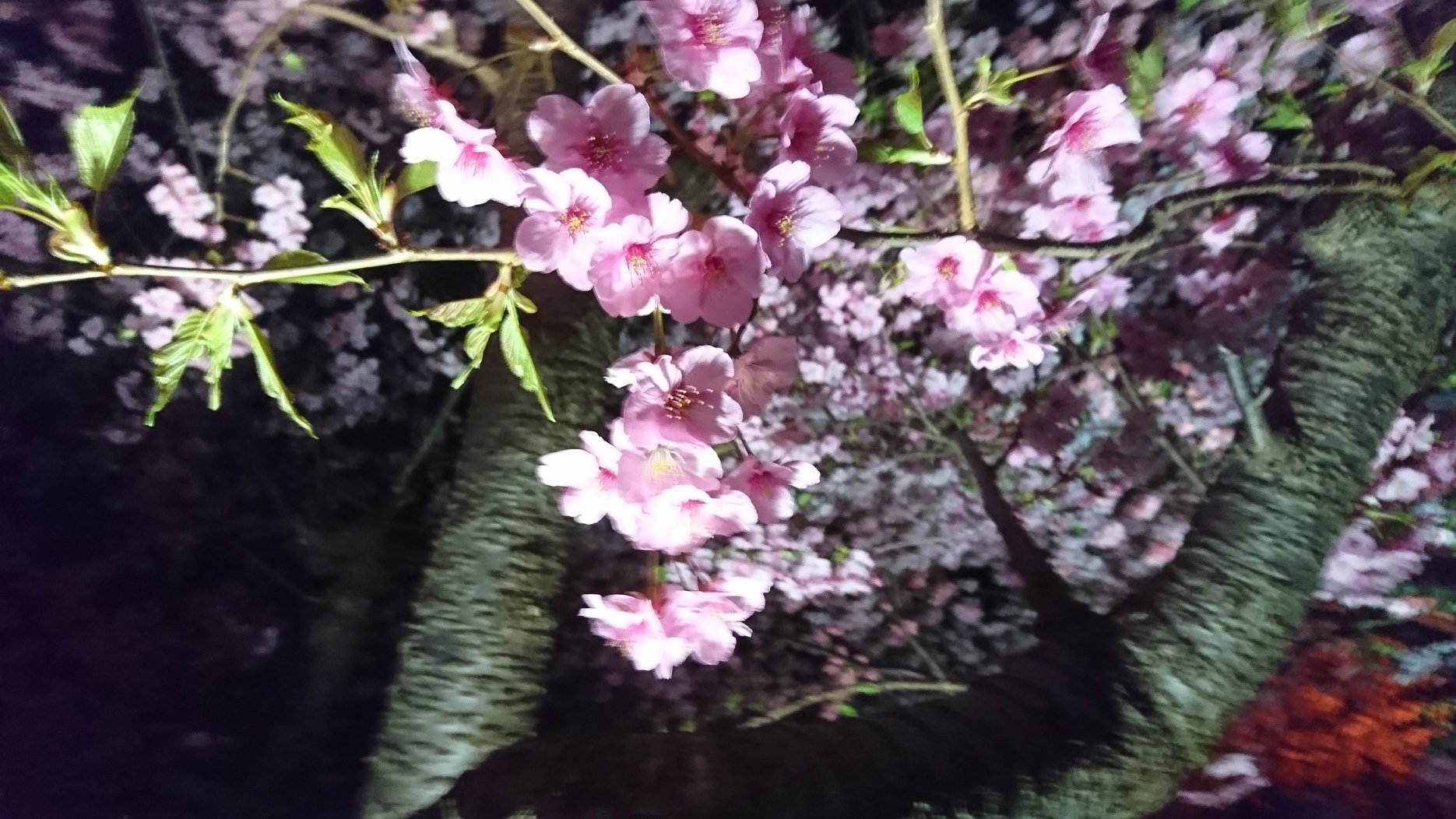 2月23日河津・夜桜 7時過ぎお店は早じまい、聞けば皆さんお疲れのご様子でした。