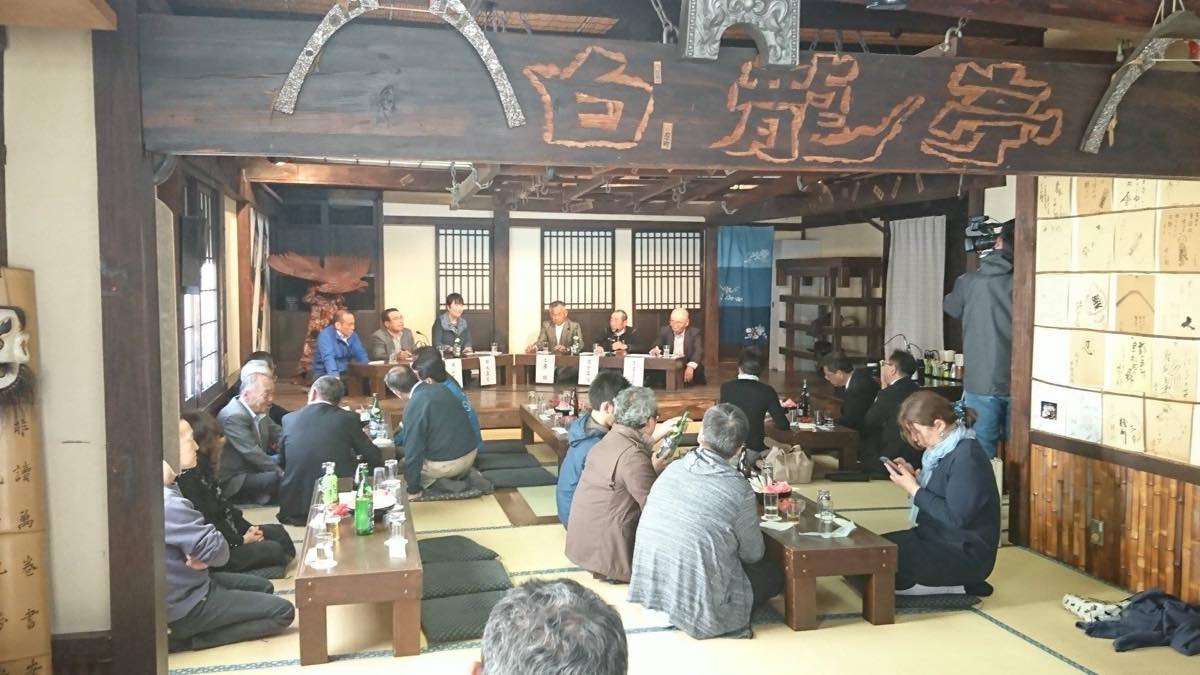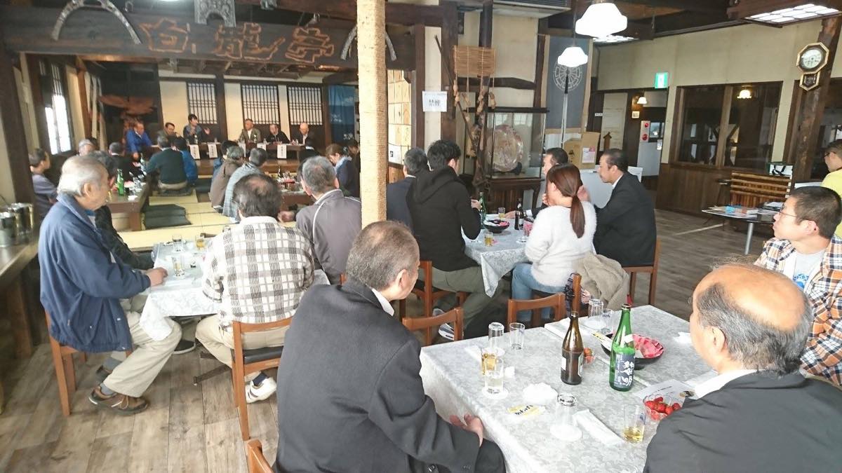 4月13日下田駅前フロント二階にて、下田黎明の新酒試飲会。しずおか地酒研究会主宰コピーライターの鈴木真弓さんと西暦2000年伊豆新世紀創造祭に「きんめ物語」をスタートさせて今のキンメブームが出来上がり、併せて地元の酒を作ろうと下田黎明を立ち上げた楠山さんの絡みが入り当時県内に35の酒蔵があり、内15の酒蔵が下田に見えた10月1日、お酒解説と飲みまわった当時のお話、18期の下田黎明に良くぞ続いたと激励と賛歌、立ち上がりからご飯米きぬひかりで安定供給の米作り土屋明さんはあと10年やるぞーと元気、そのはず多忙の中を土屋副知事ご挨拶、このお米・田植え参加も戴いた。新任の山口賀茂地域局長にも元気を御提供できた夜でしたが今農業従事者175万人、10年で100万人減った。細くても永く続く事を願うばかりである。
