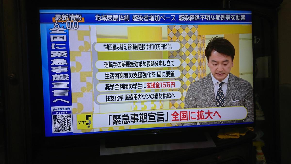 ブログ 緊急事態宣言 2020年4月18日 by KTV-12ch 4月16日全国に「緊急事態宣言」移さない移されない とにかく 見えない判らないウイルスですから 2m以上離れて接触とは 言うものの物を渡したり、渡されたり、日常付いて回る接触に 大変ですが何より病院の医師看護師の皆さん最前線で頑張って 居られますので 移さない移されないで 自分の為周りのために。