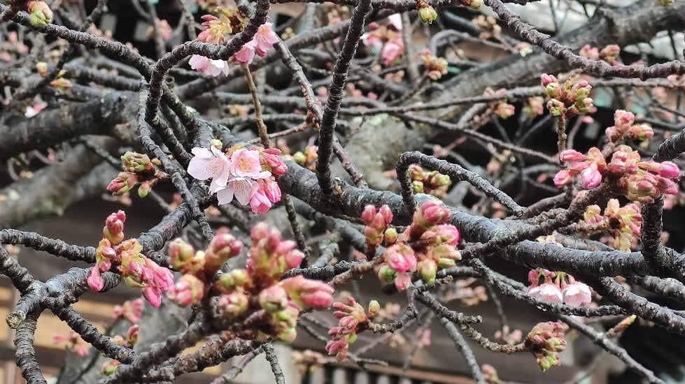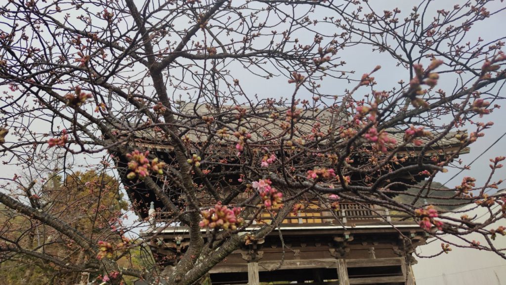 遅いものの咲き始めた桜。伊豆は南に来るほど美しい。