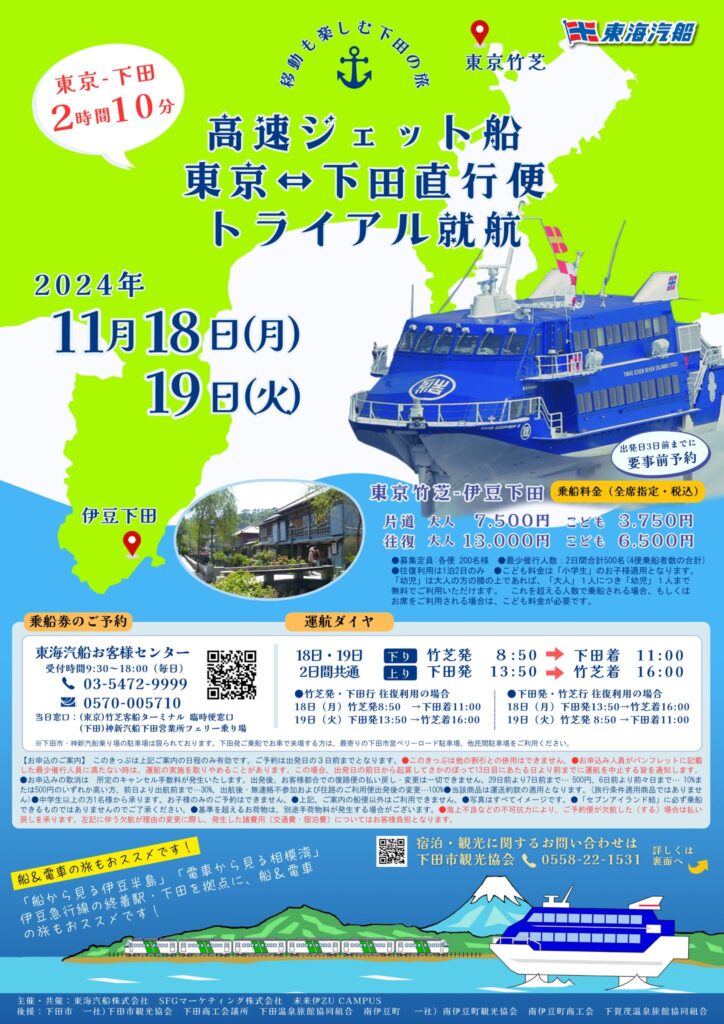 ブログ 高速ジェット船トライアル就航 2024年10月2日 by KTV-12ch 未来伊zuCAMPUS一員として企画実行中です 海から陸を見よう 行きは船で帰りは踊り子 行きは踊り子、帰りは船で 東海汽船に聞くと下田港は空いているけど東京竹芝桟橋はラッシュとか、地方が痴呆にならないように願うばかりです。