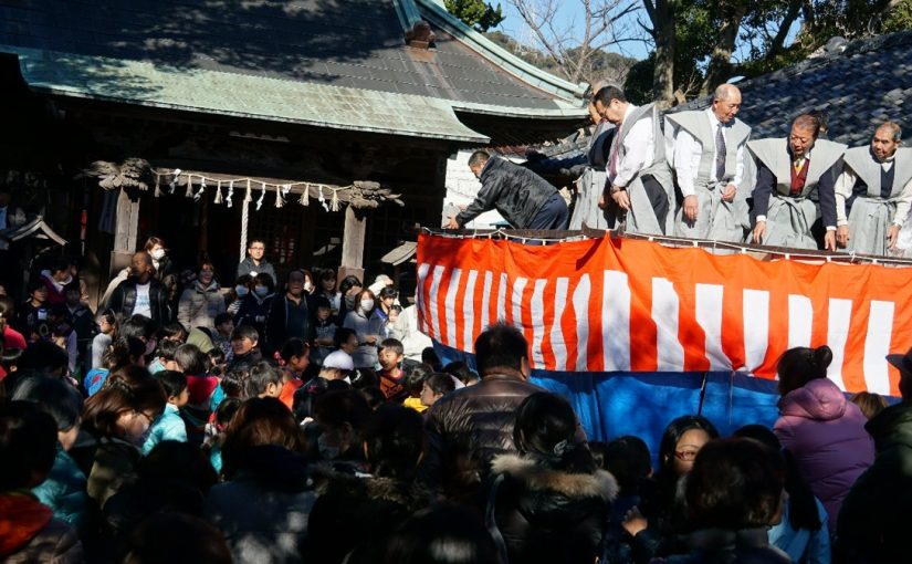 ブログ 節分豆まき 波布神社 八幡神社 2015年2月1日 by KTV-12ch いよいよ節分 立春 私の個人的な事を言えばそうです初午・お稲荷さん 今年は息子たちに頼み 沼津は遠くなりにけりです。 波布神社は下田市役所横 駅のすぐそば、聞けばその昔、本郷田んぼのなかにポツンとあったとのこと 八幡神社は街中のそれこそ ど真ん中 両神社とも善男善女 大賑わいでした。 無病息災 どうか平和な一年でありますように。
