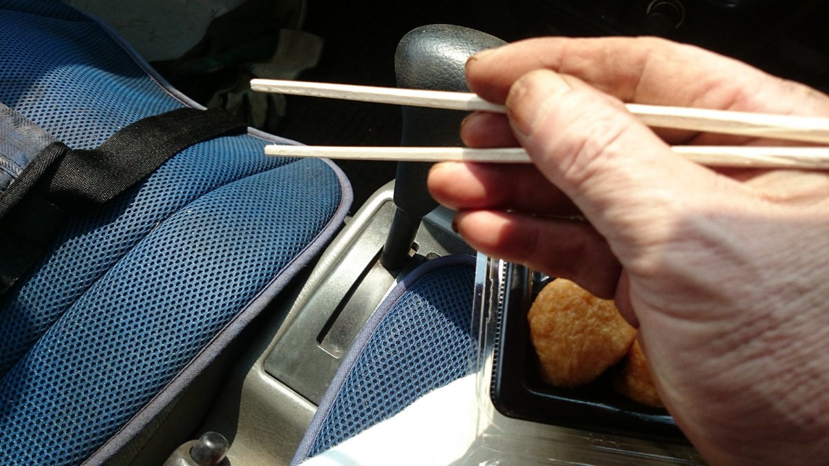 は明日の仕事。昼のコンビニ弁当は軽トラでラジオを聞きながら・・・