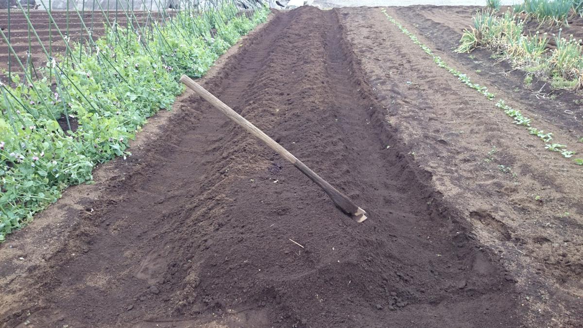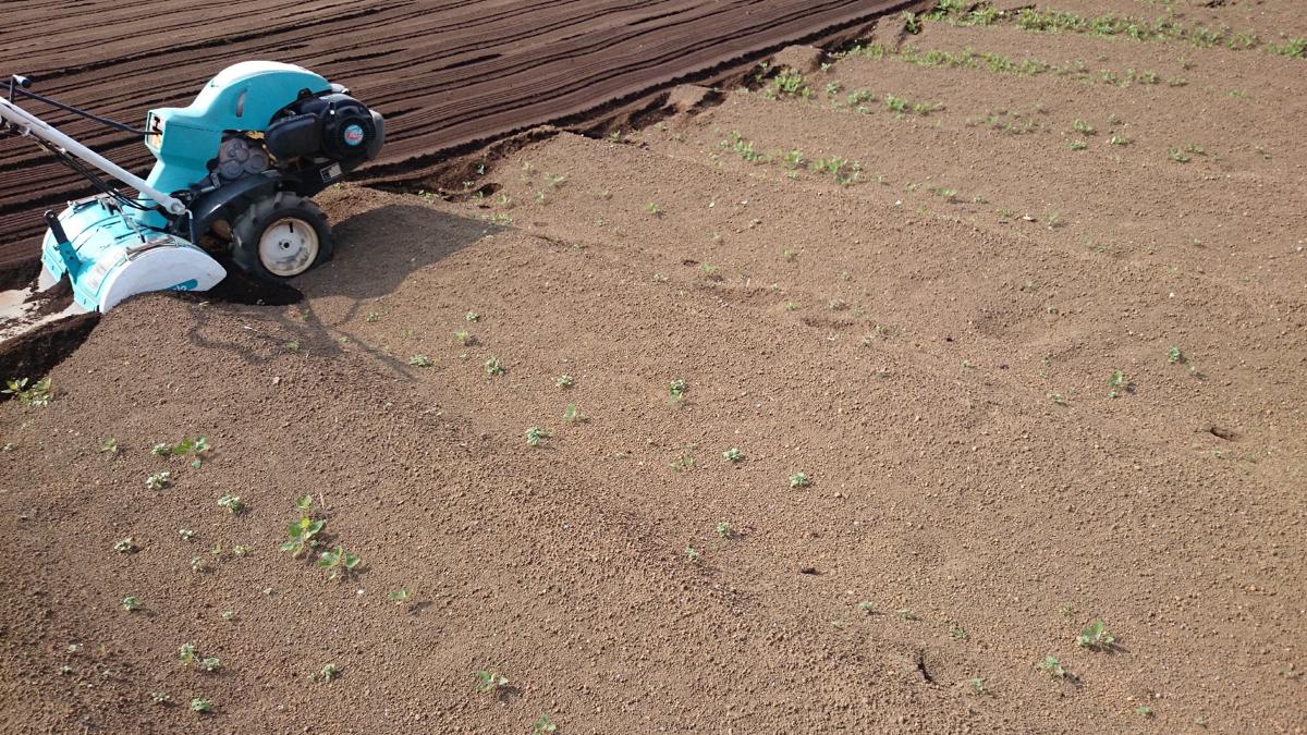 耕作、そうそう「さといも」は我が家「シロメ」のみ昨年の種芋を掘り起し2畝 2列で70個