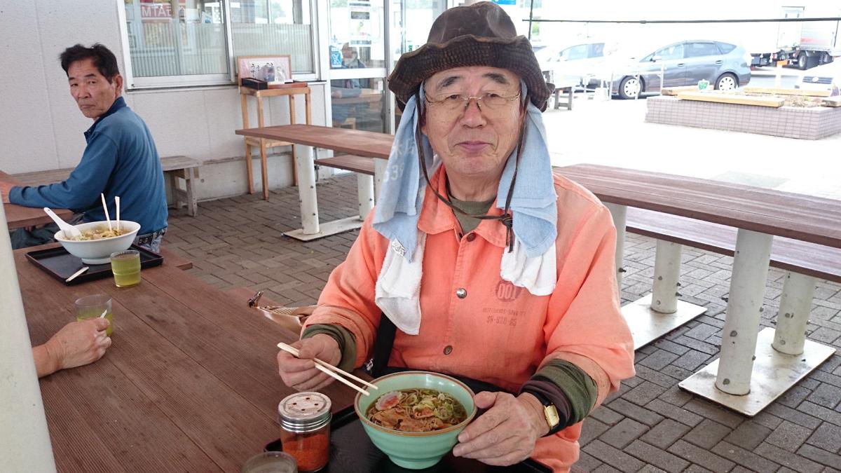 農民の三人は異色の存在、でも畑から車で二分、便利で何よりは美味しい。肉そばは