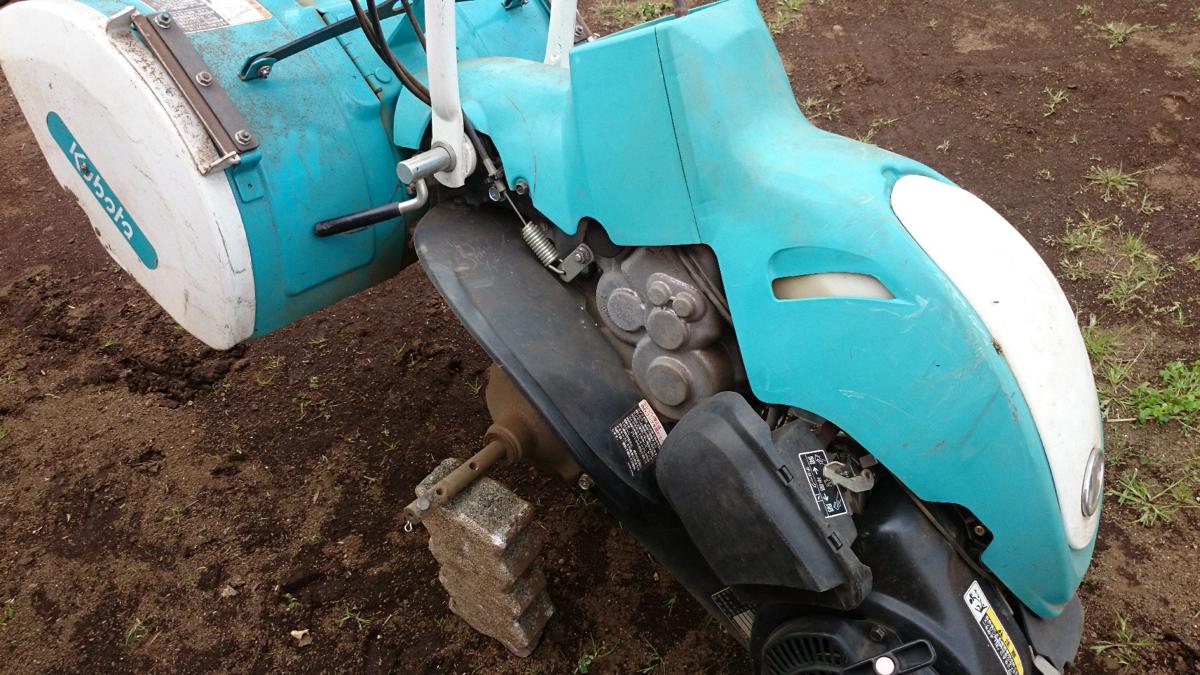 なんと昨日故障の耕運機 クボタの勝又さん 部品持参で修理完了 タイヤも順調