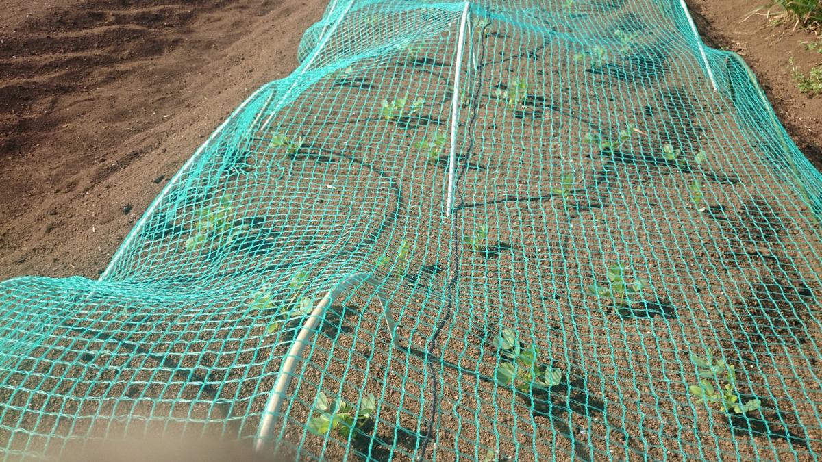 落花生も芽が出た ネットをかけてあるので カラスが大騒ぎしても