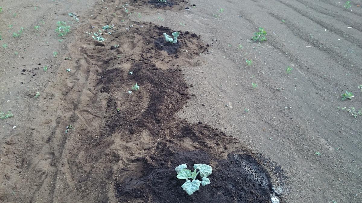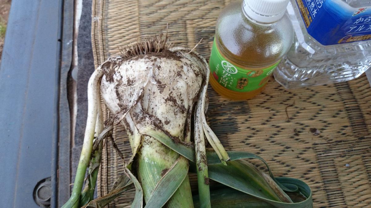 ゴーヤは強いなあ 去年の種が見事に出たぞ・・ そんな期待も堆肥のせいかなあ?大ニンニクが成長中だが野球のボールくらいにまでなってきた。