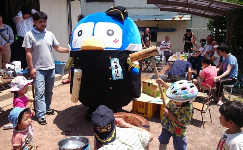 田植えが終わると 下田親善大使 ペルリン君が登場 餅つきに かき氷に