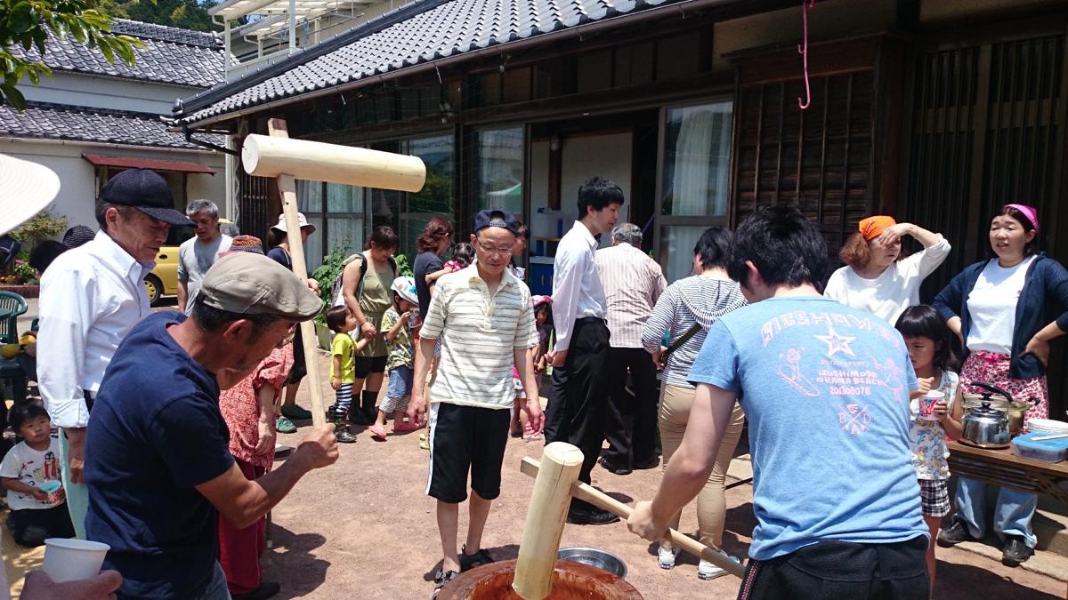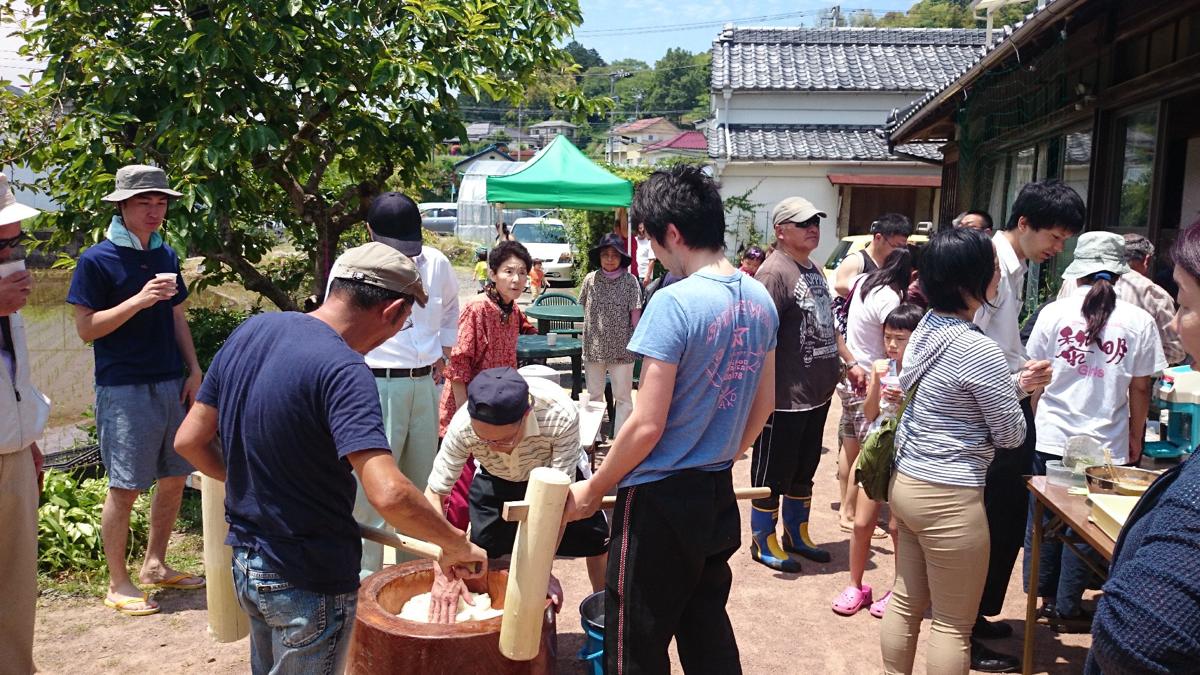 田植えが終わると 下田親善大使 ペルリン君が登場 餅つきに かき氷に