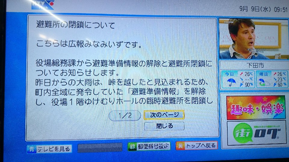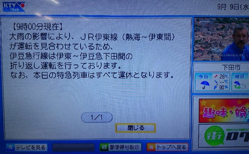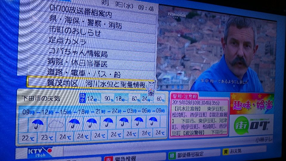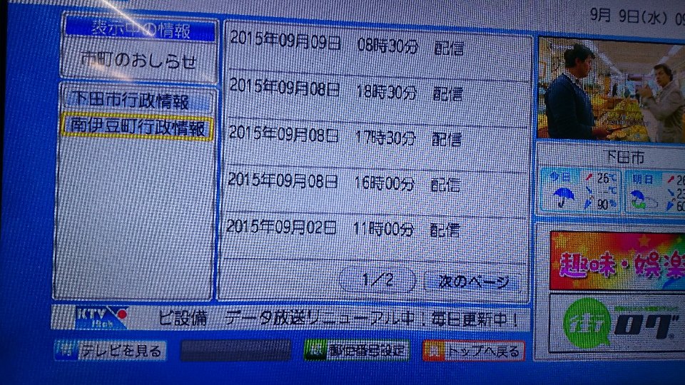 お知らせ/ブログ ようやくここまで でもテレビ&スマホ進化 2015年9月9日 by KTV-12ch テレビのDATA放送 日増しに充実 スマホとの連携も日増しに充実 家にいて 外出先で 確認可能 日増しにです。