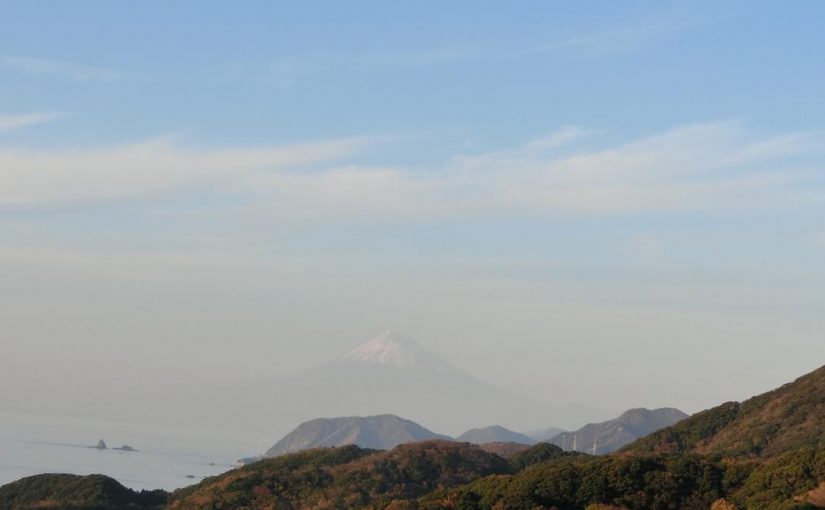 初めて松崎町石部に行きました。霞んでいましたが真正面に富士山が見えて、これは雲見の海岸でも真正面に見えるし、同じ方向向いていると妙なことで感心しました。今日は下見と言う事で昼間の訪問、改めて近いうちに・・と思って居ります。