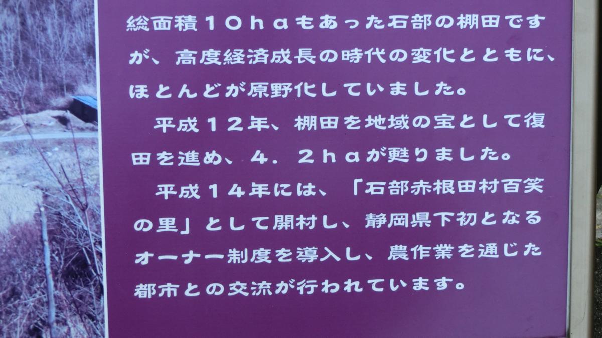 南伊豆町よりマーガレットラインで波勝崎を過ぎて石部の棚田看板を右に入るとすぐに棚田を見下ろせる広場が有り案内板を撮影。そのまま道なりに降りて行きますとくねくね曲がりながらずっと細い道が続きます、ようやくたどり着いた地区に旧・三浦小学校(さんぽと言うんだそうです)、戻って調べました。藤原氏の時代に遡る歴史、藤原家と地元・高橋家の繋がりから今日までを学びました。 つまりこの地賀茂地域は都との人事交流ではありませんが政変が有ったり戦が有ると逃げ延びたり、島流しではありませんが都から移封された人々との生活が永く行われて来ているんですね。