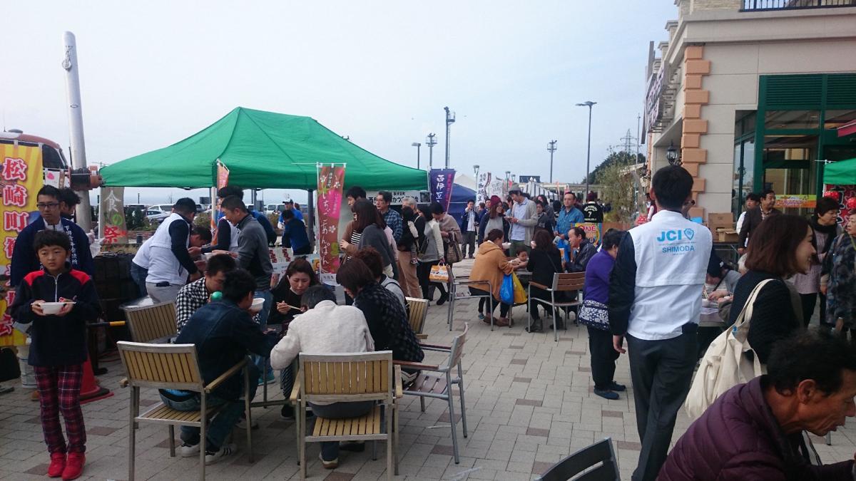 11月22日10時から 下田青年会議所が取りまとめ 賀茂地域各市町の特産を・・新東名沼津サービスエリア上り線で・・イセエビやカニの入った味噌汁・・無料サービス・・列をなして・・黒田さん「森守」の猪&鹿のソーセージ 御客様みんなの不思議そうな顔が印象的でした! 南伊豆町・一色の黒田さんは(株)森守を設立 猪と鹿調理して製品作りまで始めました。本業は農業で林業で狩猟者で消防団での地域の何でも屋、私どもでは図に乗って11月2日の当地秋祭りは地元地域宜しくと黒田さんに撮影をボランティアでお願いしています。