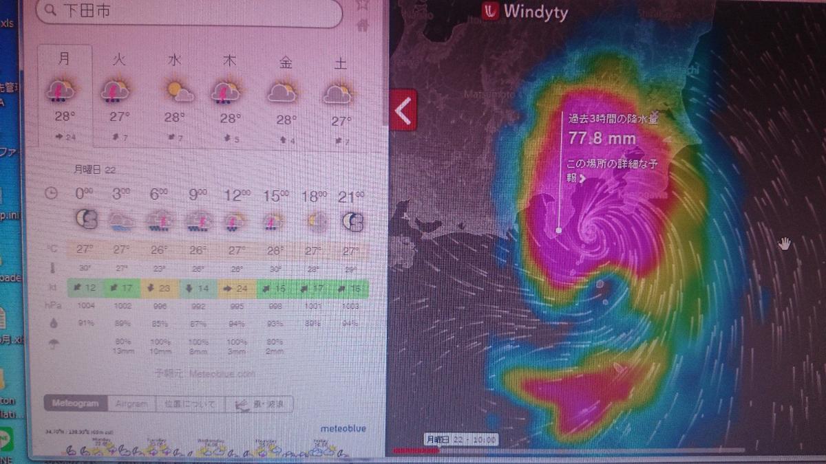 8月22日台風直撃 朝7時ずぶぬれ状態で15分 テレビの送信はおかげで順調 朝6時から社員の点検 驚いた 昨年当社ではテレビ画面の色が赤くなり さあ注意しよう 天気・台風の中身はこうです!とテレビ画像で案内、同時にスマホアプリ「ウエルかも」でお伝えし始めたばかりでした。NHKのまとめているビッグデータを元にして「こんなアプリが!!」ネットやスマホのアプリは停まらない!!!