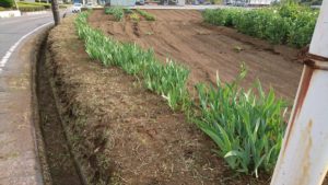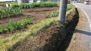 4月23日余裕で土手の草刈り 近頃は愛鷹スマートインター出入り車両が頻繁に通るので綺麗にしとかなくっちゃー・・でも片側一車線そしてカーブ あぶない危ない。