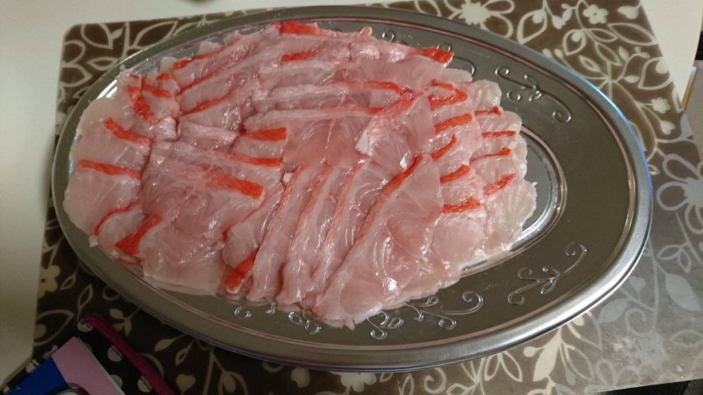 ブログ/下田・伊豆グルメ 金目鯛 2017年5月6日 by KTV-12ch 5月1日に中村師匠が釣上げた「きんめ」3日の日に横浜の娘宅の御膳に「しゃぶしゃぶ」 な・なんと大きかったわけだ「これで一匹分。」それにしても400mも下までおろして何匹も釣る中村親分に敬服、一方ワニョ君ボウズ・・・おらが会社の島崎君もボウズ・・・簡単に釣れないんだから 養殖がどうかなあ??? 旨ーい。