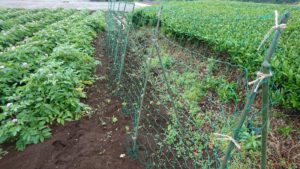 5月14日ビニールカバーからはみ出したトマトやキューリ、もう蔓が伸び始めたいんげん豆、カバーを外して棚を柵をネット張りを・・進士エイちゃんよりの山芋も芽を出してネット張り、同じく羽切さんからの大和イモも自作の昨年度よりの芋も芽を出してネット張り、そういえば昨年の和紅茶全国大会で埼玉の方から戴いた里芋も吾輩の保存種と合同で芽を出した。そんなこんなでお付き合いの種が仲良く勢揃い、つる首かぼちゃも芽を出して奥湯ケ野の友人山崎さんが待ってるから届けなくっちゃ・・・と忙しい一泊二日の沼津農園、大きく言えば日本脳炎?パニック寸前。