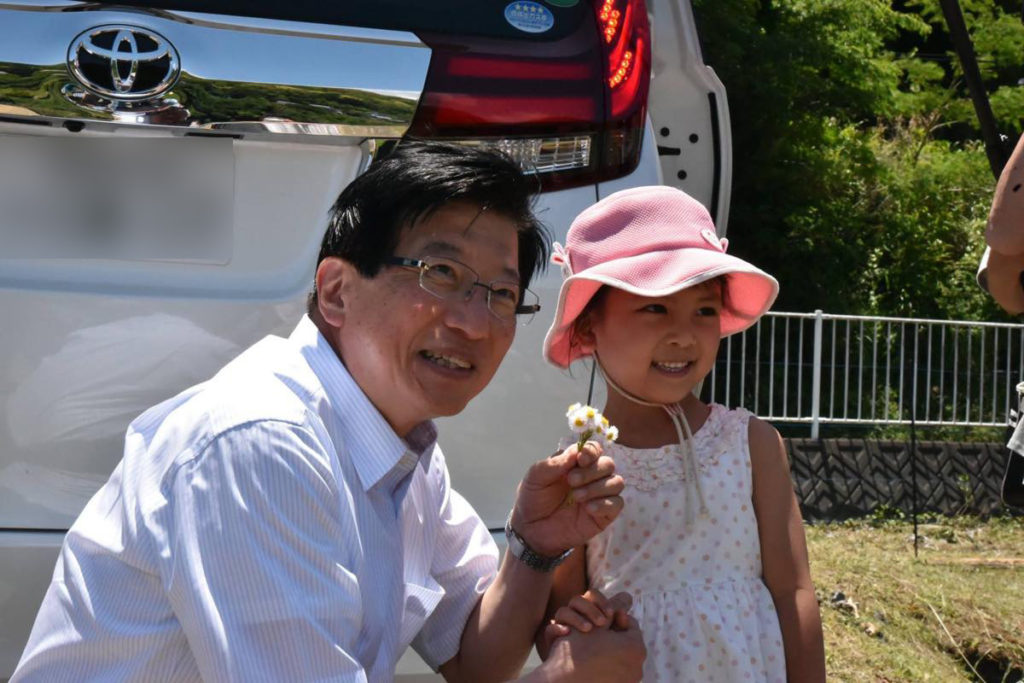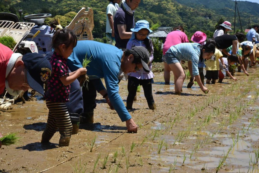 6月4日下田自酒黎明の原料米「きぬひかり」田植え、川勝知事、土屋副知事ご参加されての賑やかな行事となりました。道端の花を摘んでどうぞと渡された知事には伊豆の清らかさが届いたことと思います。70数名での田植えでした。